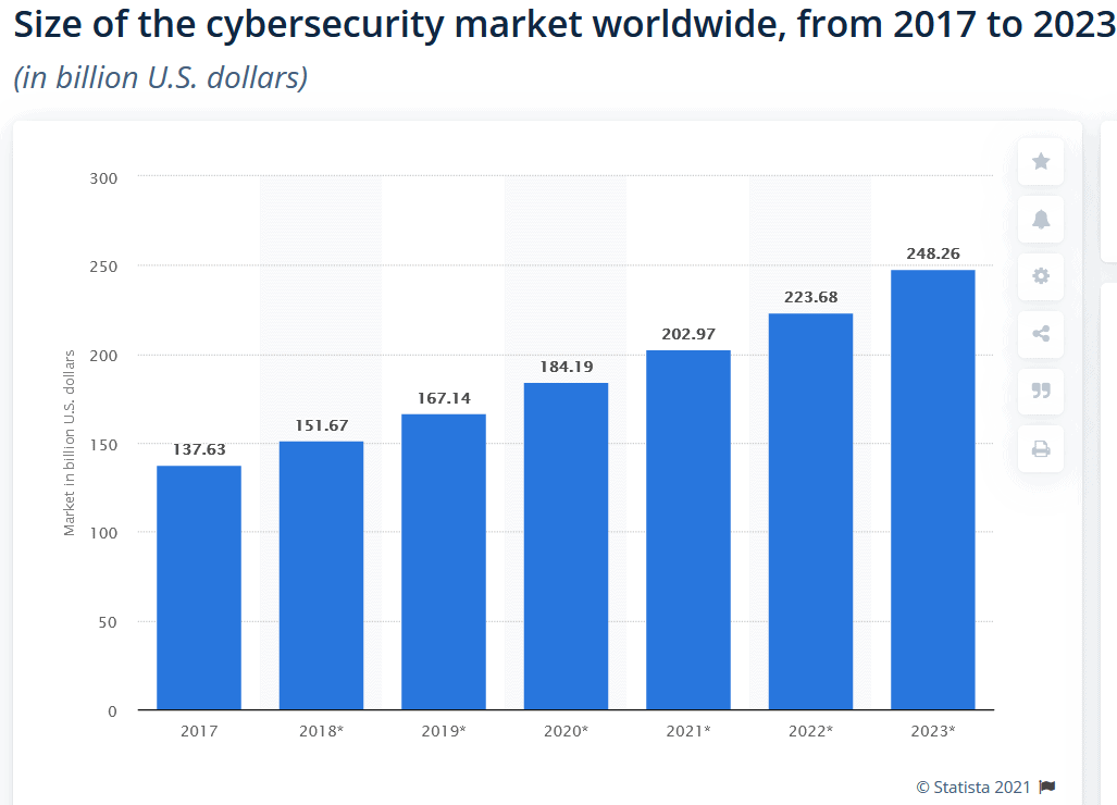 Статистические данные подчеркивают риск киберпреступности, если им не уделить должного внимания. Согласно Gartner, глобальный рынок информационной безопасности будет расти со среднегодовым темпом роста за пять лет на 8,5% и достигнет 170,4 млрд долларов в 2022 году. Текущая отрасль информационной безопасности и кибербезопасности показывает, что 95% нарушений кибербезопасности вызваны человеческими ошибками, а средняя глобальная стоимость утечки данных для малых и средних предприятий составляет 3,9 миллиона долларов.